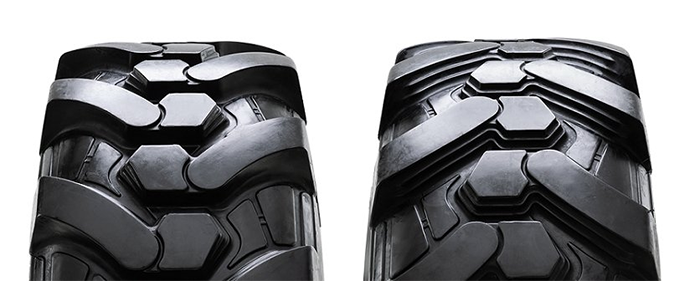 - zakrzywione schodkowe łopatki bieżnika zapewniają jego maksymalne samooczyszczanie, co jest niezbędne dla zachowania przyczepności podczas pracy na błotnistym lub miękkim podłożu.