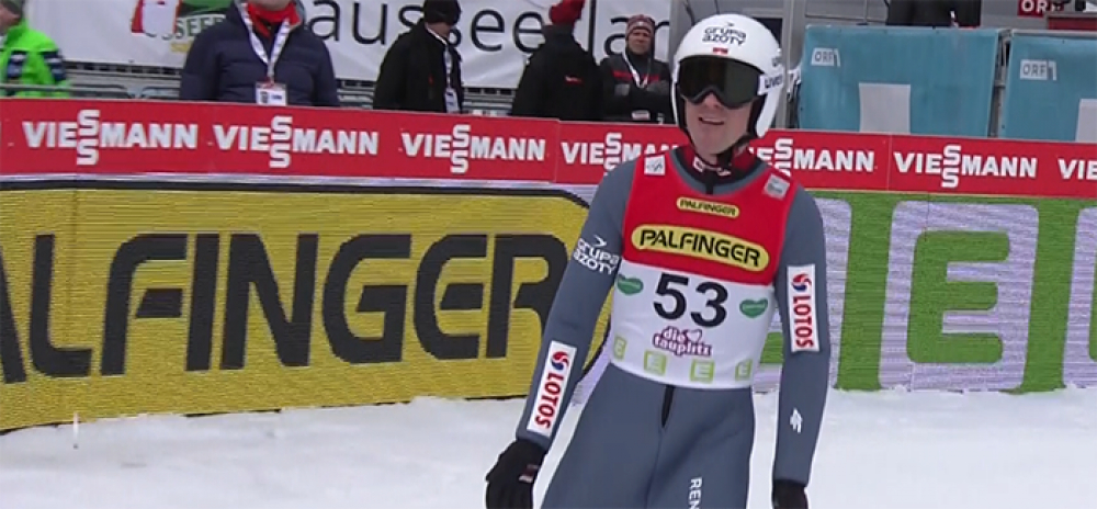 Po świetnym dla Polski sobotnim konkursie skoków na mamuciej skoczni w Bad Mitterndorf, kiedy na najwyższym stopniu podium stanął Piotr Żyła, w niedzielę namieszał silny wiatr, który uniemożliwił rozegranie drugiej serii zawodów. Pierwszą oglądaliśmy jednak z zaciekawieniem, zauważając przy okazji znajome logo...