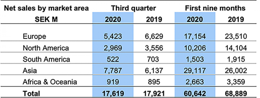 Po słabszym drugim kwartale globalna liczba zamówień na maszyny Volvo wzrosła o 40%, a dostawy maszyn o 20% w trzecim kwartale 2020 r. Sprzedaż maszyn Volvo Construction Equipment wzrosła o 6%. O tak dobrych – w kontekście pandemii – wynikach zdecydował rynek chiński.