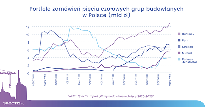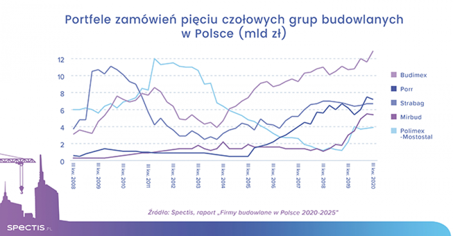 Wśród firm specjalizujących się w budownictwie kubaturowym, największą wartość kontraktów realizują Skanska, Warbud, Budimex i Porr. W obszarze budownictwa mieszkaniowego, wiodącymi wykonawcami są obecnie grupy: Budimex, Erbud i Unibep – każda z nich jest zaangażowana w projekty mieszkaniowe o wartości 700-900 mln zł. W przypadku sektora niemieszkaniowego czołowi wykonawcy to Skanska i Warbud, a także Budimex i Porr. W 2021 r. słabą stroną budownictwa będzie jego naturalne opóźnienie względem bieżącej sytuacji gospodarczej. Dlatego też, poprawa dynamiki budownictwa możliwa jest dopiero w drugiej części roku. Skala ożywienia w dużej mierze zależy jednak od sprawnego wdrożenia pakietu inwestycyjnego współfinansowanego w nowych środków unijnych.