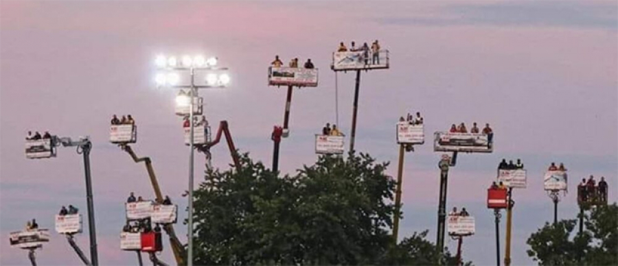 Pandemiczne ograniczenia wyzwalają kreatywność. Rok temu czytaliśmy o zagorzałym kibicu Śląska Wrocław, który mimo zamknięcia trybun dla publiczności znalazł sposób, by obejrzeć mecz swojej drużyny na żywo. Wynajął po prostu podnośnik koszowy i choć „trochę” go to kosztowało, był bardzo zadowolony. Jego pomysł wykorzystał kibic Stomilu Olsztyn, który od czerwca 2020 już cztery razy miał okazję śledzić mecze swoich ulubieńców z podnośnika. Apetyt rośnie w miarę jedzenia, więc w lutym postanowił sięgnąć wyżej i ustawić sprzęt nad stadionem Legii podczas meczu Polska‑Andora.
