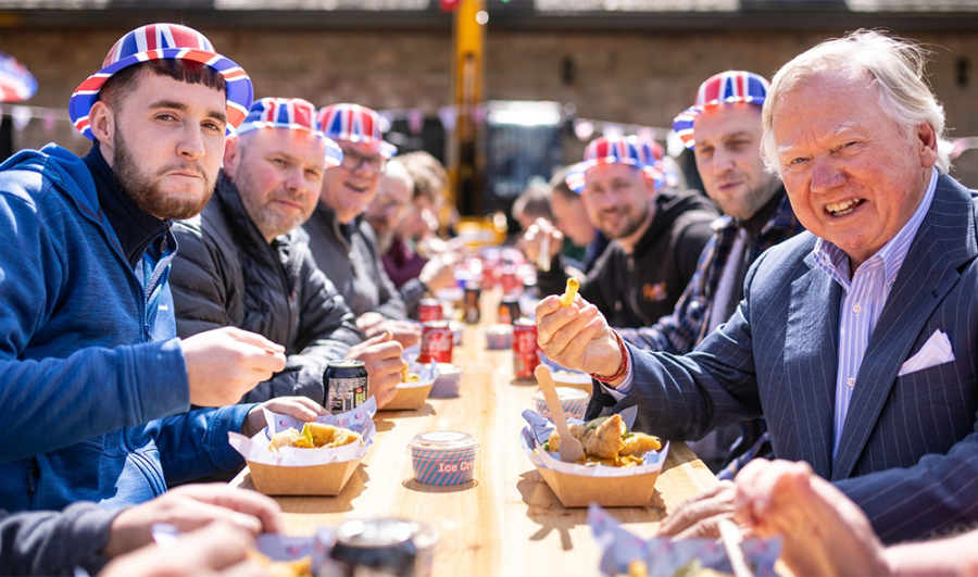 Koronację króla Karola III uroczyście obchodzono również w tak ważnej dla brytyjskiej gospodarki firmie, jak JCB. Ponad 5 i pół tysiąca pracowników JCB ze wszystkich zakładów produkcyjnych w Wielkiej Brytanii zjadło z tej okazji koronacyjny lunch. Wśród patriotycznych dekoracji z czerwonych, białych i niebieskich chorągiewek i balonów zaserwowano klasyczne dania brytyjskiej kuchni – m.in. fish and chips, kiłebaski z ziemniakami, placek z kurczakiem i angielski deser trifle. Na cztery dni obchodów przygotowano tonę ziemniaków, 172 kg kurczaka, 293 kg ryb i 125 kg kiełbasy. Rybę z frytkami wybrała połowa uczestników lunchu!